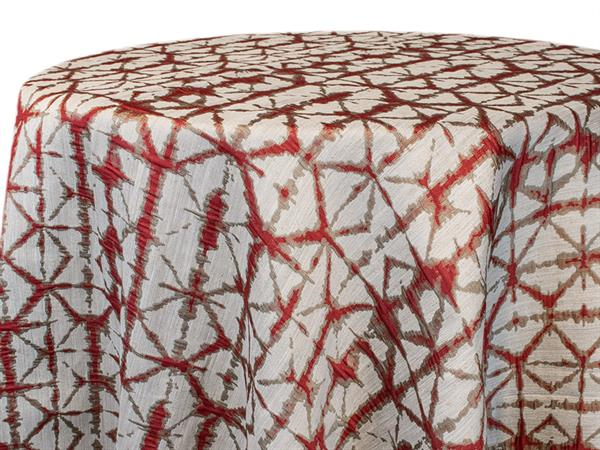 Shibori Hex, Red 132" Round Linen